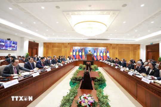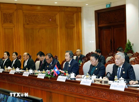 Tổng Bí thư chia sẻ với đồng chí Saysomphone Phomvihane về kết quả thành công của cuộc hội đàm với Tổng Bí thư, Chủ tịch nước Lào Thongloun Sisoulith. Hai bên đã nhất trí nâng quan hệ Việt Nam – Lào lên tầm mức “Hữu nghị vĩ đại, đoàn kết đặc biệt, hợp tác toàn diện, gắn kết chiến lược”, thể hiện tầm nhìn chung, lợi ích chiến lược đan xen và định hướng đồng hành lâu dài vì sự phát triển bền vững, tự cường và thịnh vượng của hai dân tộc.