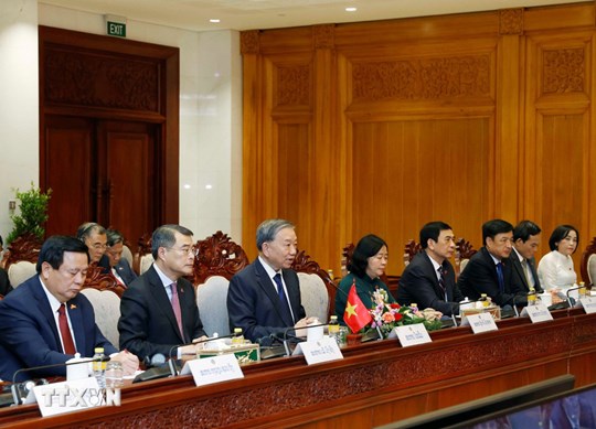 Tổng Bí thư Tô Lâm cảm ơn Chủ tịch Quốc hội Saysomphone Phomvihane đã quan tâm, tạo điều kiện thuận lợi cho cộng đồng người Việt Nam tại Lào sinh sống, học tập, làm ăn và kinh doanh; đồng thời đề nghị Lào tạo thuận lợi hơn nữa cho bà con và các doanh nghiệp Việt Nam hợp tác, đầu tư tại Lào, góp phần phát triển kinh tế – xã hội Lào và quan hệ hai nước.