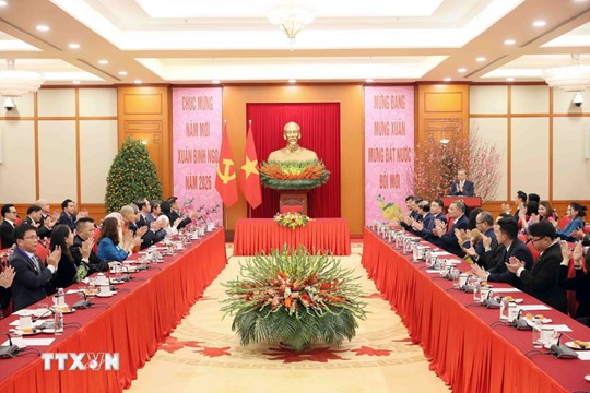 Tổng Bí thư nói, năm 2025 là năm có nhiều cơ hội nhưng cũng nhiều thử thách. Trong bối cảnh tình hình thế giới và khu vực có nhiều biến động phức tạp, với sự chung sức đồng lòng của toàn Đảng, toàn dân, toàn quân, trong đó có sự đóng góp của 6,5 triệu đồng bào ta ở nước ngoài, đất nước ta đã vững vàng vượt qua nhiều khó khăn, thử thách để đạt được nhiều kết quả quan trọng trên tất cả các lĩnh vực. Chúng ta tiếp tục giữ vững ổn định chính trị - xã hội; kinh tế duy trì đà tăng trưởng tích cực; quốc phòng, an ninh được giữ vững; đối ngoại hội nhập quốc tế cũng đạt được nhiều dấu ấn, góp phần nâng cao vị thế, uy tín và trách nhiệm của Việt Nam trên trường quốc tế.