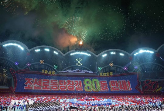 *Tối cùng ngày, tại Sân vận động 1 tháng 5 (thủ đô Bình Nhưỡng), Tổng Bí thư Tô Lâm và Đoàn đại biểu cấp cao Việt Nam đã dự Chương trình biểu diễn nghệ thuật nhân dịp Kỷ niệm 80 năm Ngày thành lập Đảng Lao động Triều Tiên.