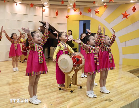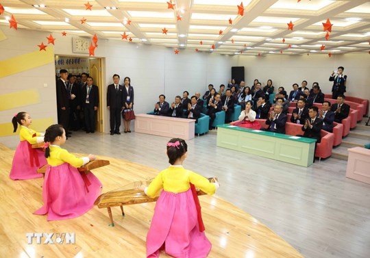 Tại đây, các học sinh đã trình bày những tiết mục đặc sắc ca ngợi tình hữu nghị Việt Nam - Triều Tiên, các bài dân ca truyền thống ca ngợi tình yêu quê hương, đất nước. Đặc biệt, các em nhỏ đã hát bài "Ai yêu Bác Hồ Chí Minh hơn thiếu niên nhi đồng" và biểu diễn độc tấu piano độc đáo.