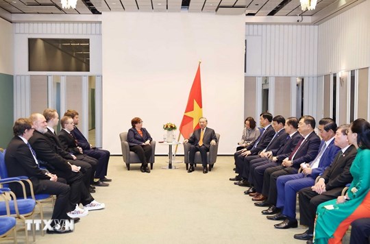 Tổng Bí thư Tô Lâm tiếp Chủ tịch Đảng Cộng sản Phần Lan Tiina Sandberg. (Ảnh: Thống Nhất/TTXVN) |