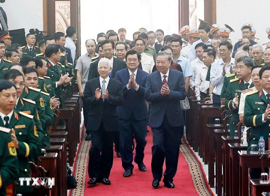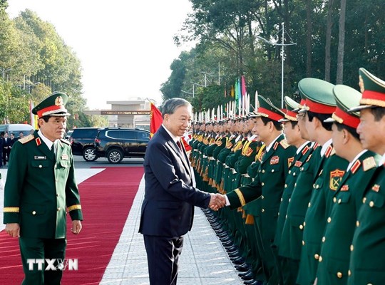 | Tổng Bí thư Tô Lâm cùng các đại biểu dự Lễ kỷ niệm 80 năm Ngày truyền thống Lực lượng vũ trang Quân khu 9 (10/12/1945 - 10/12/2025). Ảnh: Thống Nhất/TTXVN |