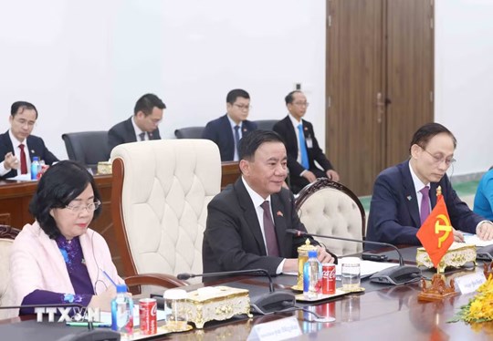 (Mặt trận) - Sáng 10/4, tại Cung 7/1 - Trụ sở Trung ương Đảng Nhân dân Campuchia ở thủ đô Phnom Penh, sau lễ đón chính thức trọng thể, đồng chí Thường trực Ban Bí thư Trần Cẩm Tú và Trưởng Ban Thường trực Ban Thường vụ Trung ương Đảng Nhân dân Campuchia (CPP) Samdech Say Chhum đã tiến hành hội đàm.