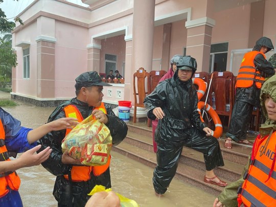 | Lực lượng vũ trang tiếp tế hàng nghìn suất nhu yếu phẩm đến với người dân vùng ngập sâu |