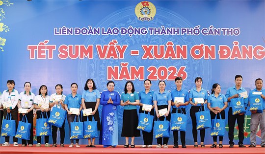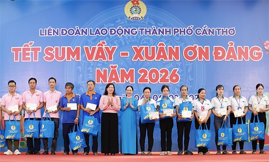 (Mặt trận) - Ngày 4/2/2026, LĐLĐ TP Cần Thơ tổ chức chương trình “Tết Sum vầy - Xuân ơn Đảng” năm 2026 và khai mạc “Chợ Tết Công đoàn” tại Khu Công nghiệp Tân Phú Thạnh.