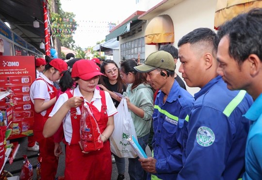 | Tặng phiếu mua hàng trị giá 500.000 đồng/người cho công nhân lao động. Ảnh: Hoàng Triều |