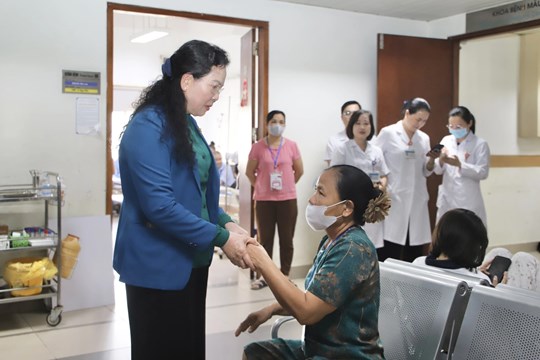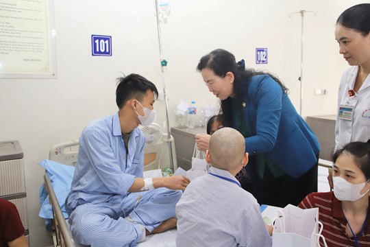 | Ủy viên Trung ương Đảng, Bí thư Đảng ủy, Chủ tịch Hội LHPN Việt Nam Lê Thị Thủy thăm hỏi và động viên gia đình có con đang điều trị tại Viện Huyết học - Truyền máu Trung ương |