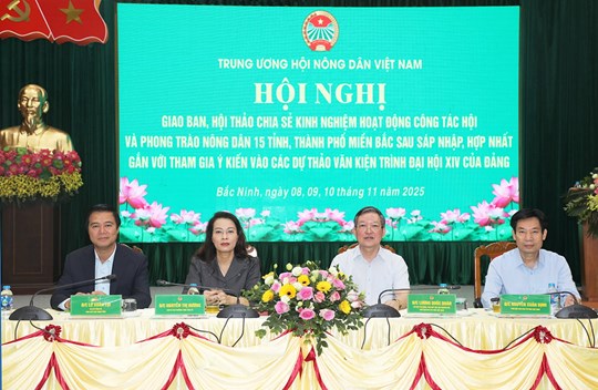 Hội nghị giao ban, hội thảo chia sẻ kinh nghiệm hoạt động công tác Hội và phong trào nông dân 15 tỉnh, thành phố miền Bắc sau sáp nhập, hợp nhất gắn với tham gia ý kiến vào các dự thảo văn kiện trình Đại hội đại biểu toàn quốc lần thứ XIV của Đảng được Trung ương Hội Nông dân Việt Nam tổ chức trong thời gian 1 ngày 10/11. Theo đó, buổi sáng, các đại biểu chia sẻ kinh nghiệm hoạt động công tác Hội và phong trào nông dân 15 tỉnh, thành phố miền Bắc sau sáp nhập, hợp nhất. Buổi chiều, các đại biểu tham gia ý kiến vào các dự thảo văn kiện trình Đại hội đại biểu toàn quốc lần thứ XIV của Đảng.