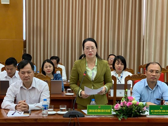 Bà Phạm Hải Hoa – Chủ tịch Hội Nông dân TP Hà Nội đã trao đổi, chia sẻ về công tác tổ chức cán bộ của các cấp Hội Nông dân TP sau sắp xếp tinh gọn MTTQ, các tổ chức chính trị - xã hội và thực hiện mô hình chính quyền địa phương hai cấp.