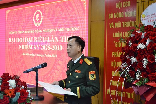 (Mặt trận) - Sáng 23/12 tại Hà Nội, Hội CCB Bộ Nông nghiệp và Môi trường (NN&MT) tổ chức Đại hội đại biểu lần thứ V, nhiệm kỳ 2025 - 2030. Thượng tướng Bế Xuân Trường, Phó Chủ tịch Ủy ban Trung ương MTTQ Việt Nam, Chủ tịch Hội CCB Việt Nam dự và chỉ đạo Đại hội.