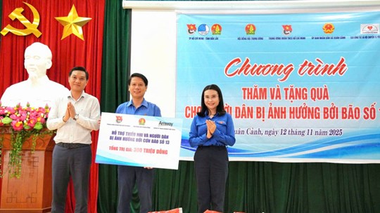 Trong đó, Trung ương Đoàn, Hội đồng Đội Trung ương hỗ trợ 400 triệu đồng cho thiếu nhi và người dân bị ảnh hưởng bởi cơn bão số 13 gây ra từ nguồn kinh phí hỗ trợ của Công ty trách nhiệm hữu hạn Amway Việt Nam, Công ty cổ phần Tập đoàn Bảo Tín; 3.000 phần quà dụng cụ học tập dành cho thiếu nhi, trị giá 300 triệu đồng từ Công ty cổ phần Tập đoàn Thiên Long.