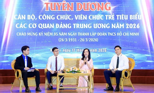 Ngày 12/3/2026, Ban Thường vụ Đoàn các cơ quan Đảng Trung ương tổ chức chương trình tuyên dương "Cán bộ, công chức, viên chức trẻ tiêu biểu các cơ quan Đảng Trung ương năm 2026".