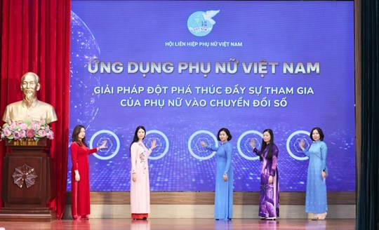 | Ủy viên TƯ Đảng, Phó Chủ tịch UBTƯ MTTQ Việt Nam, Chủ tịch Hội LHPN Việt Nam Nguyễn Thị Tuyến cùng các đại biểu thực hiện nghi thức nhấn nút ra mắt Ứng dụng Phụ nữ Việt Nam |