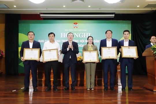 | Ông Lương Quốc Đoàn trao bằng khen cho Hội Nông dân các tỉnh, thành. Ảnh: Phạm Hưng |