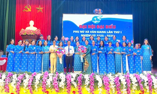 Các đại biểu tặng hoa chúc mừng Ban Chấp hành Hội LHPN xã Văn Giang, nhiệm kỳ 2025 - 2030 |