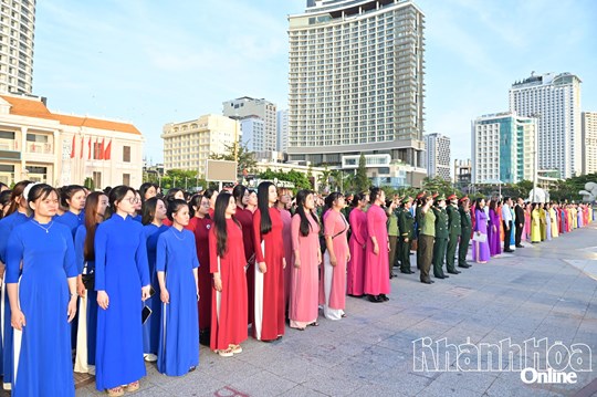 (Mặt trận) - Sáng 6-10, tại Quảng trường 2-4 Nha Trang, Hội Liên hiệp Phụ nữ tỉnh Khánh Hòa tổ chức Lễ chào cờ tháng 10 và tuyên dương cán bộ hội tiêu biểu nhân kỷ niệm 95 năm thành lập Hội Liên hiệp Phụ nữ Việt Nam (20-10-1930 - 20-10-2025).