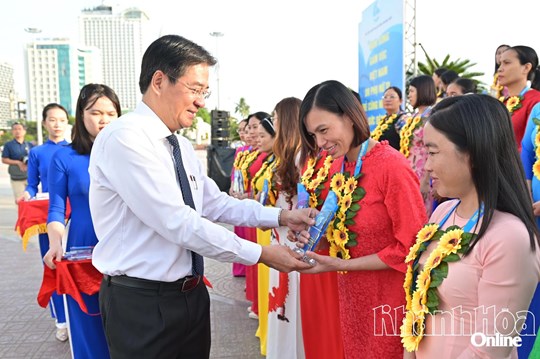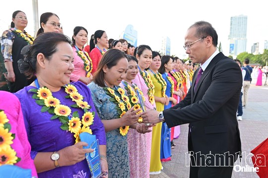 Sau lễ chào cờ, Hội Liên hiệp Phụ nữ tỉnh đã tuyên dương 95 cán bộ hội có nhiều đóng góp trong hoạt động hội và phong trào phụ nữ tỉnh Khánh Hòa.
