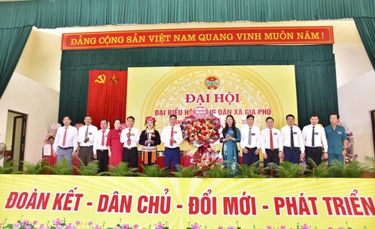 | Tặng hoa chúc mừng Đại hội Hội Nông dân xã Gia Phú, tỉnh Lào Cai. Ảnh: Hội Nông dân Lào Cai |