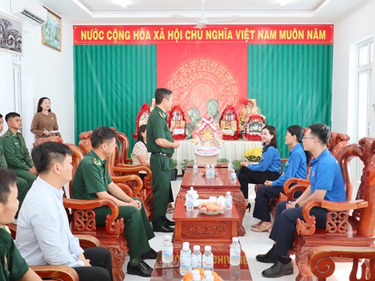 | Bí thư Trung ương Đoàn, Chủ tịch Hội đồng Đội Trung ương Nguyễn Phạm Duy Trang chúc tết cán bộ, chiến sĩ Đồn Biên phòng Lò Gò |