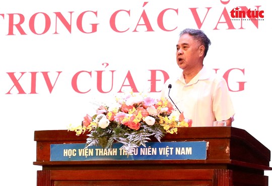 | PGS.TS Nguyễn Viết Thông, nguyên Tổng Thư ký Hội đồng Lý luận Trung ương, trình bày chuyên đề “Những nội dung cốt lõi và điểm mới nổi bật trong các văn kiện Đại hội XIV của Đảng" |
