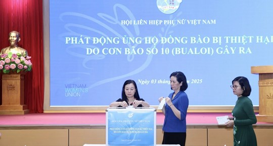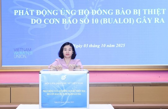 (Mặt trận) - Chiều 3/10, Trung ương Hội LHPN Việt Nam tổ chức phát động ủng hộ đồng bào bị thiệt hại do bão số 10 (Bualoi) gây ra.