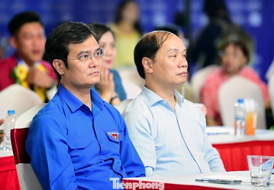 Ông Phạm Tất Thắng – Ủy viên Trung ương Đảng, Phó Trưởng Ban Tuyên giáo và Dân vận Trung ương; ông Bùi Quang Huy - Ủy viên dự khuyết T.Ư Đảng, Phó Chủ tịch Uỷ ban Trung ương MTTQ Việt Nam, Bí thư thứ nhất Trung ương Đoàn tham dự chương trình. Ảnh: Xuân Tùng |